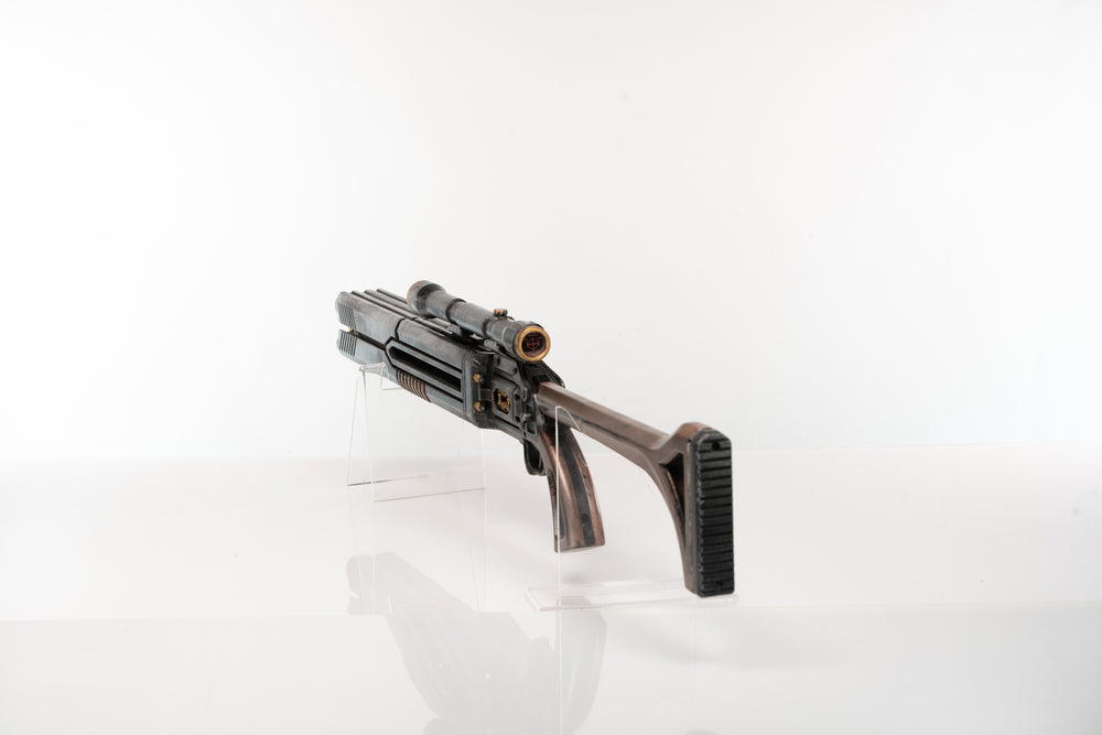 All products resembling firearms are non-firing costume piece inspired by firearms but are fake. Our products are intended for performance, cosplay, display, or film and are NON-FIRING. All replica firearms contain the colored markings required by law, including permanently attached orange plugs. Check your local laws to see if any other restriction or requirements may apply. Wulfgar Props is not responsible for reimbursement of items seized by customs or parcel services due to restrictions or tariffs. Wulfgar Props is not responsible for additional tariff fees once items are shipped. By purchasing this item you agree to full ownership of the item once it is shipped - putting the responsibility on the buyer to track and communicate with parcel services.